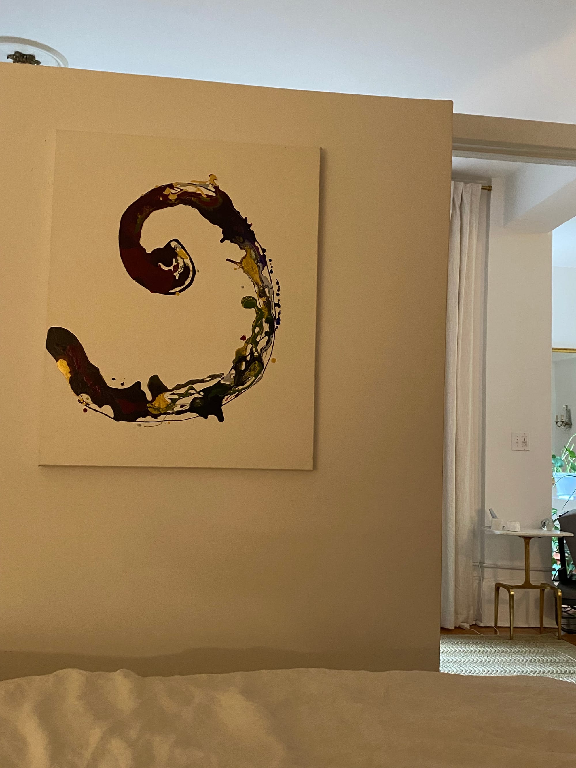 The other day I removed a piece of art that I had created several years ago. The canvas sat across from my bed; I'd stare at it upon falling asleep and waking. I love it, and when I created it, it represented transformation to me and the messy power of creation. I created it with the Fibonacci sequence in mind, splashing paint in a somewhat controlled fashion onto the canvas. Yet, the other day, the impulse came over me to remove it. Why? Because it was old energy. I had moved through that transformation cycle that the painting symbolized. It was time for fresh energy, a new symbol.