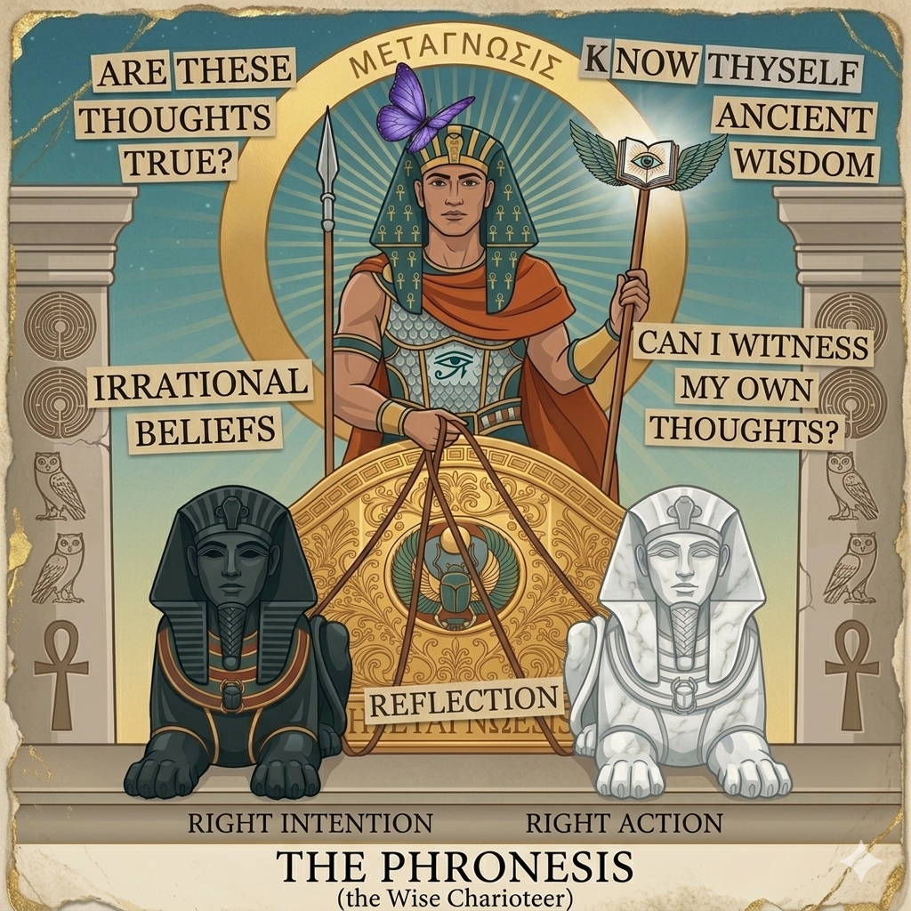 Plato described this process of mental autonomy in his allegory of the Chariot—for the charioteer must use his reason to move the chariot (self) forward in an orderly manner, using the horse’s reigns to control our two horses—the black horse representing irrational impulses and/or selfish desires and the white horse representing high moral and/or noble impulses. We all have both impulses inside of us and the goal of being in the role of Charioteer is to master them both (and therefore self) through reason. We can use the Socratic Method on ourselves to create more awareness of ourselves and others.